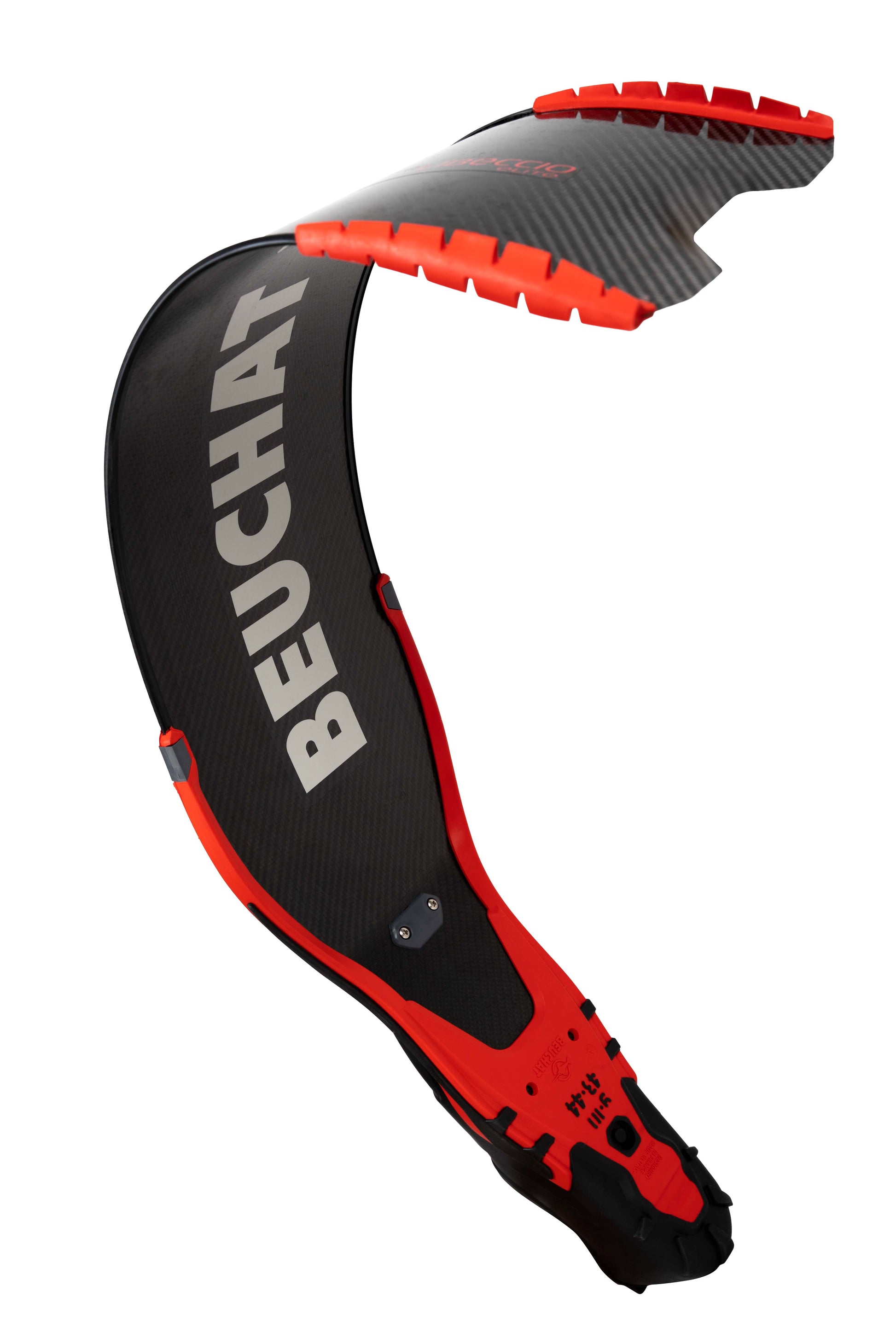 - La pala de fibra de vidrio, con un drapeado diseñado por nosotros, optimiza la relación entre la potencia de propulsión y la energía gastada, lo que le permite descender a mayor profundidad con menos esfuerzo.
