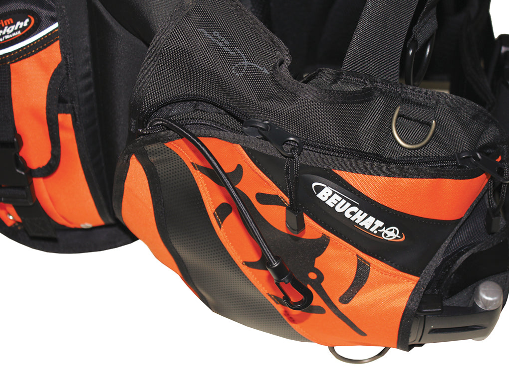 2 bolsillos de lastre delanteros de 5kg con sistema de zafado y 2 bolsillos de lastre fijos de 2,5kg en los fuelles traseros